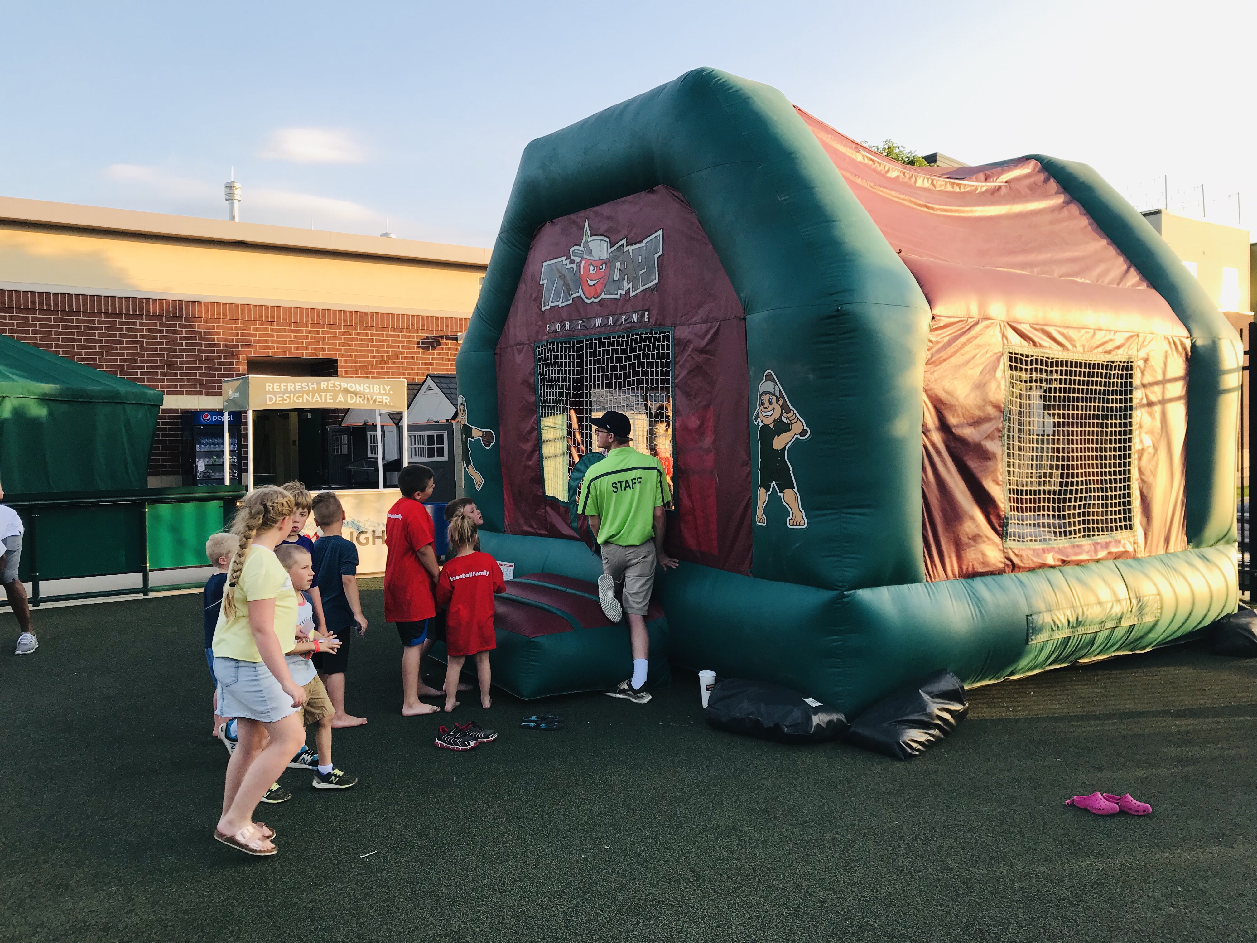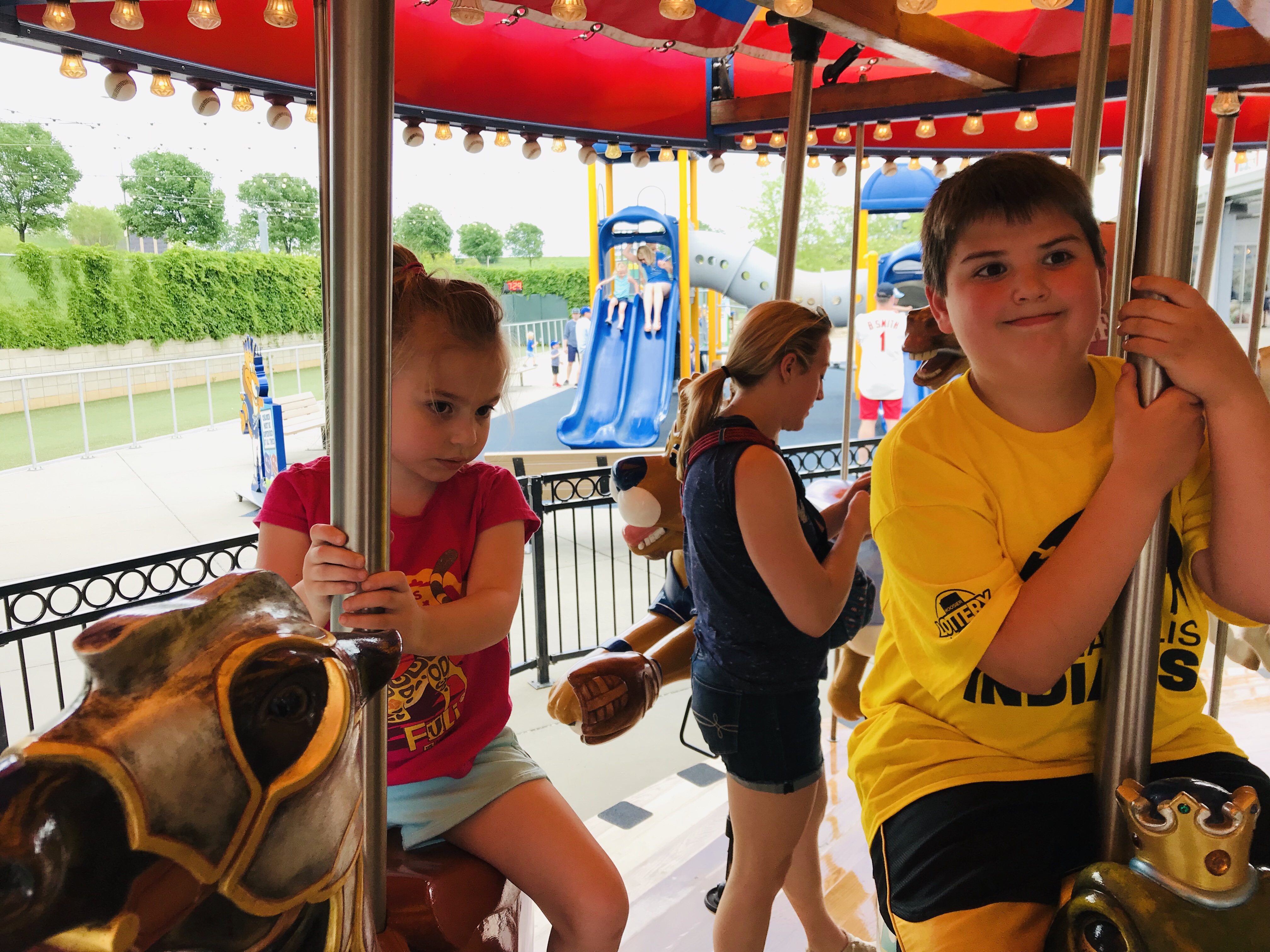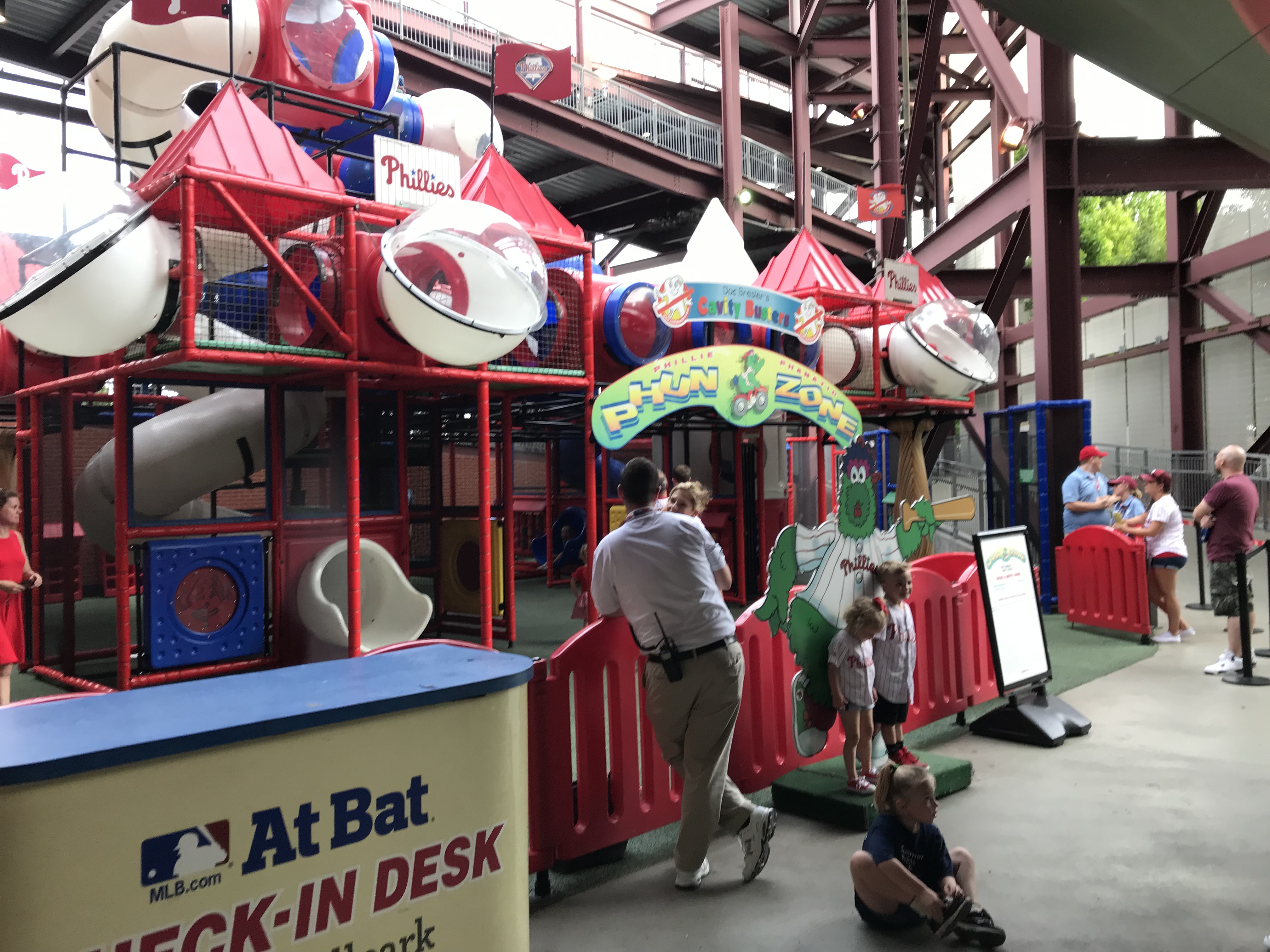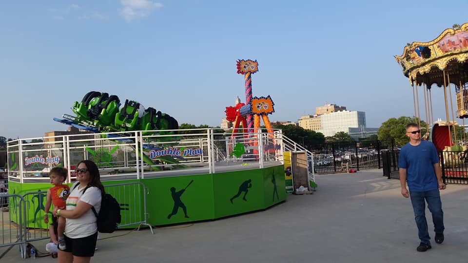 Kid Activities: The Kids Zone is expansive. It covers almost the entire outfield area of the ballpark. They had the standard playground and pitching machine, but they also had other cool additions. There was a baseball related carousel, batting cages, a mini whiffle ball field, mascot meet and greets, and a myriad of things I’m forgetting. You had to buy tokens for some of the attractions, which were affordable. We spent a good amount of time at the Outfield Experience and the kids were entertained. Free first game certificates are offered. They also handed out mascot baseball cards.