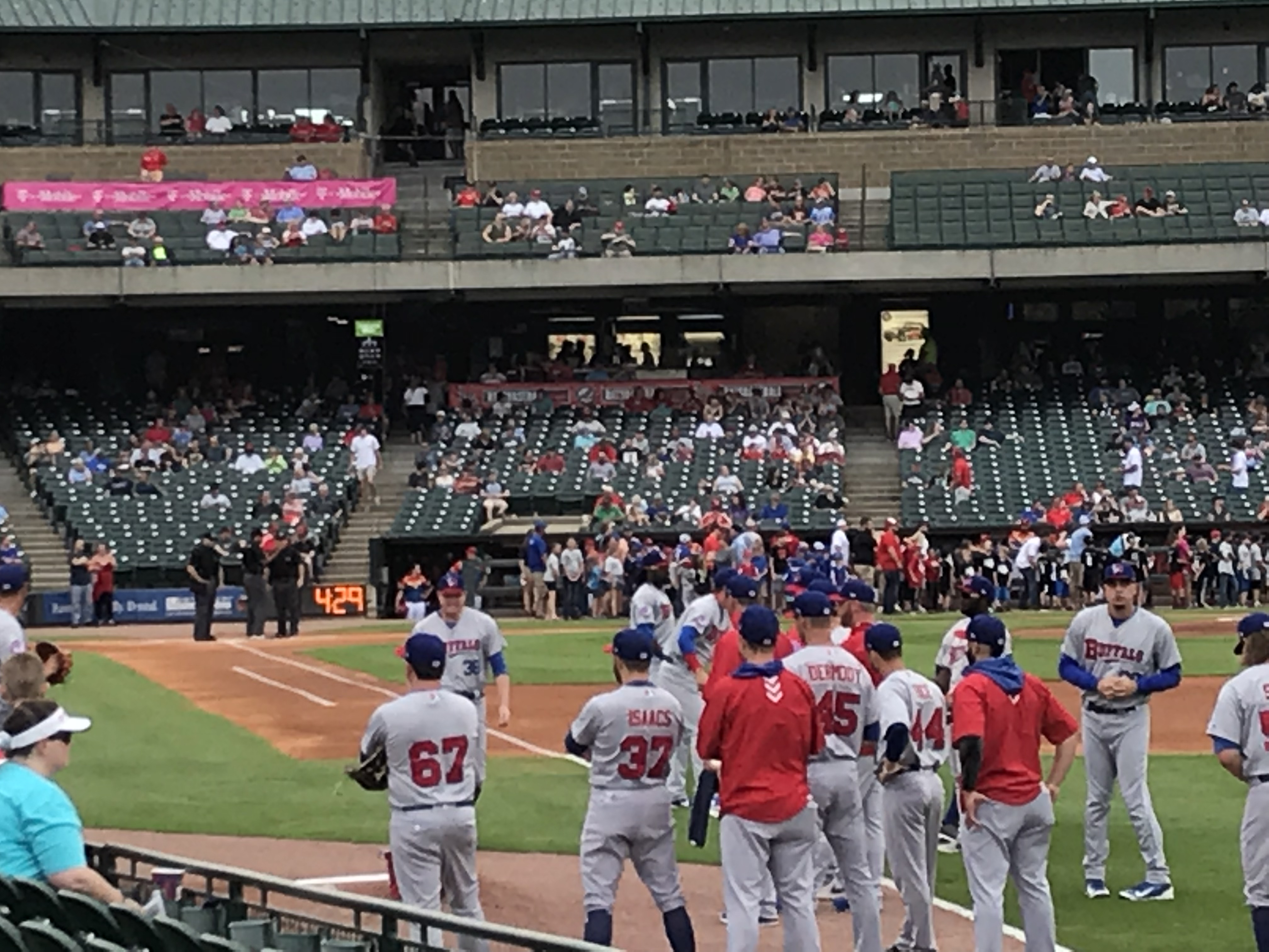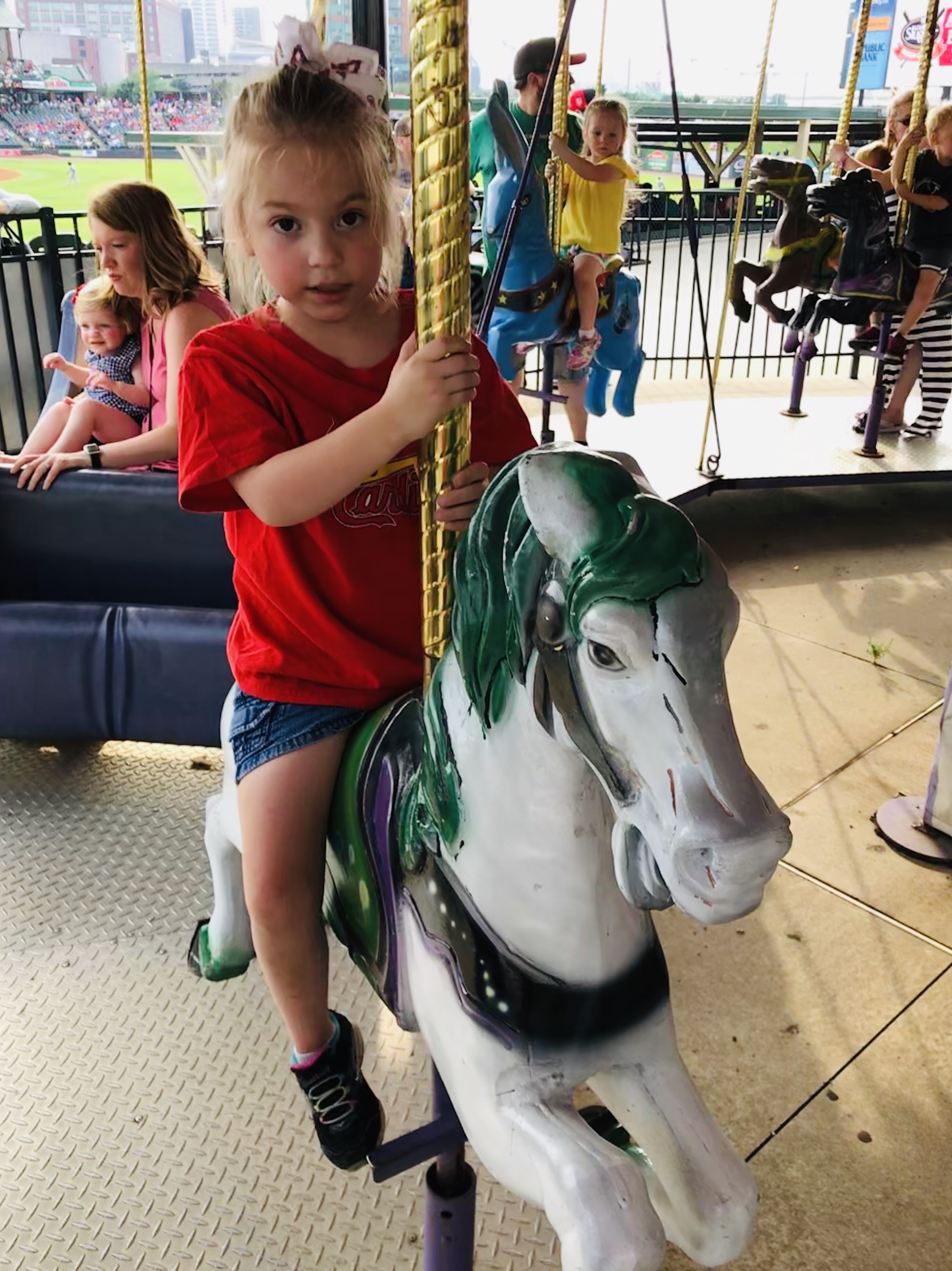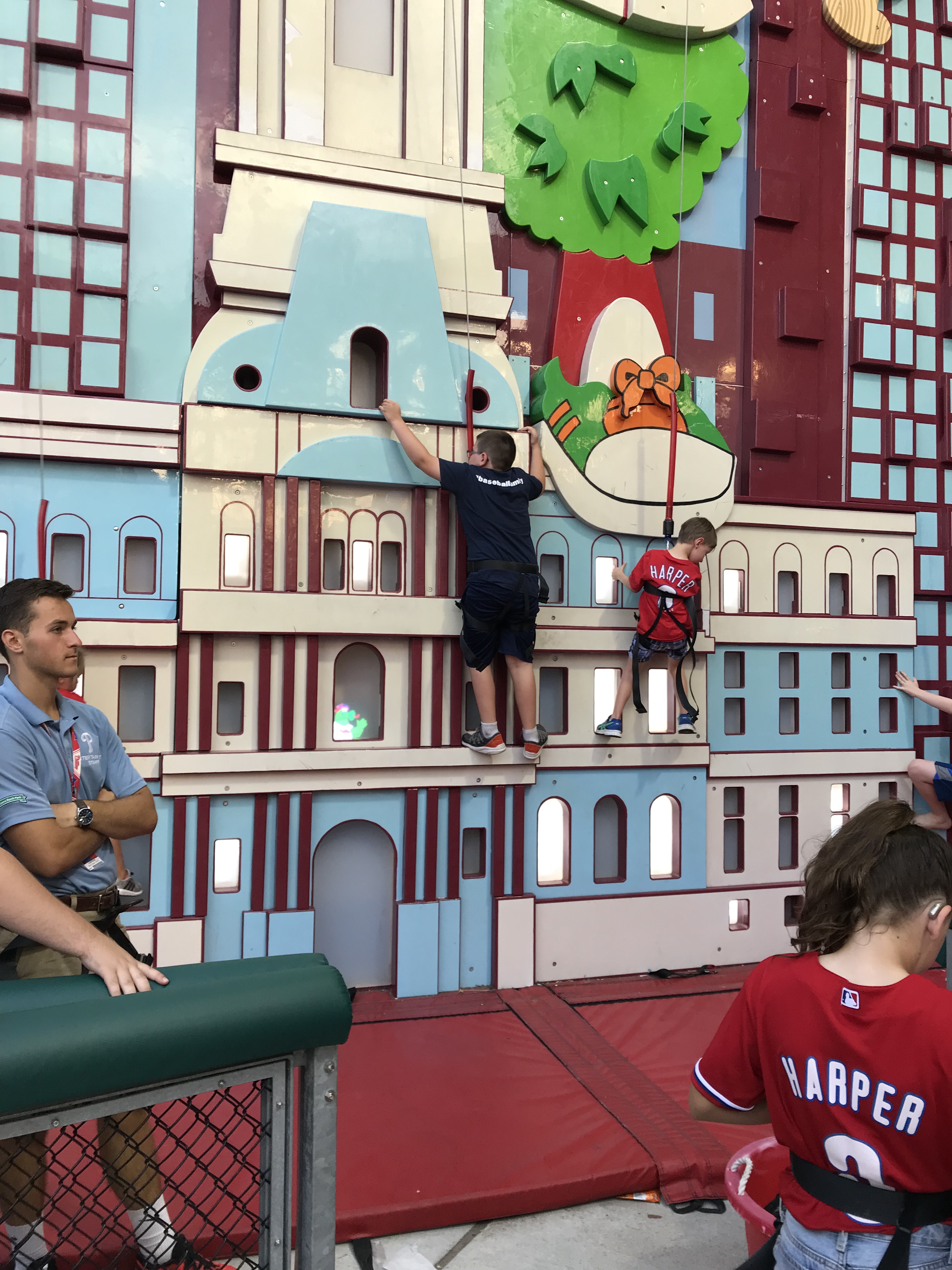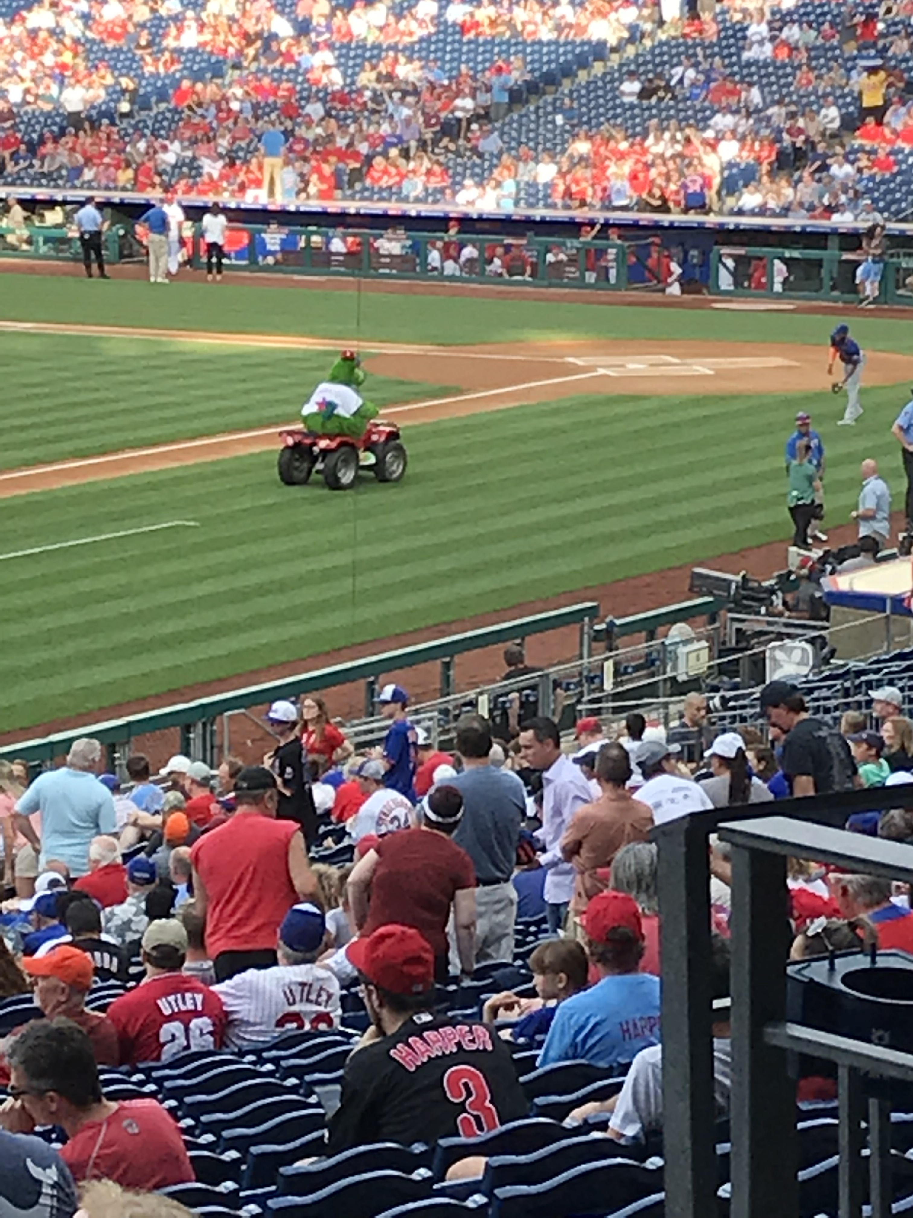 Kid Activities: The Kids Zone is expansive. It covers almost the entire outfield area of the ballpark. They had the standard playground and pitching machine, but they also had other cool additions. There was a baseball related carousel, batting cages, a mini whiffle ball field, mascot meet and greets, and a myriad of things I’m forgetting. You had to buy tokens for some of the attractions, which were affordable. We spent a good amount of time at the Outfield Experience and the kids were entertained. Free first game certificates are offered. They also handed out mascot baseball cards.