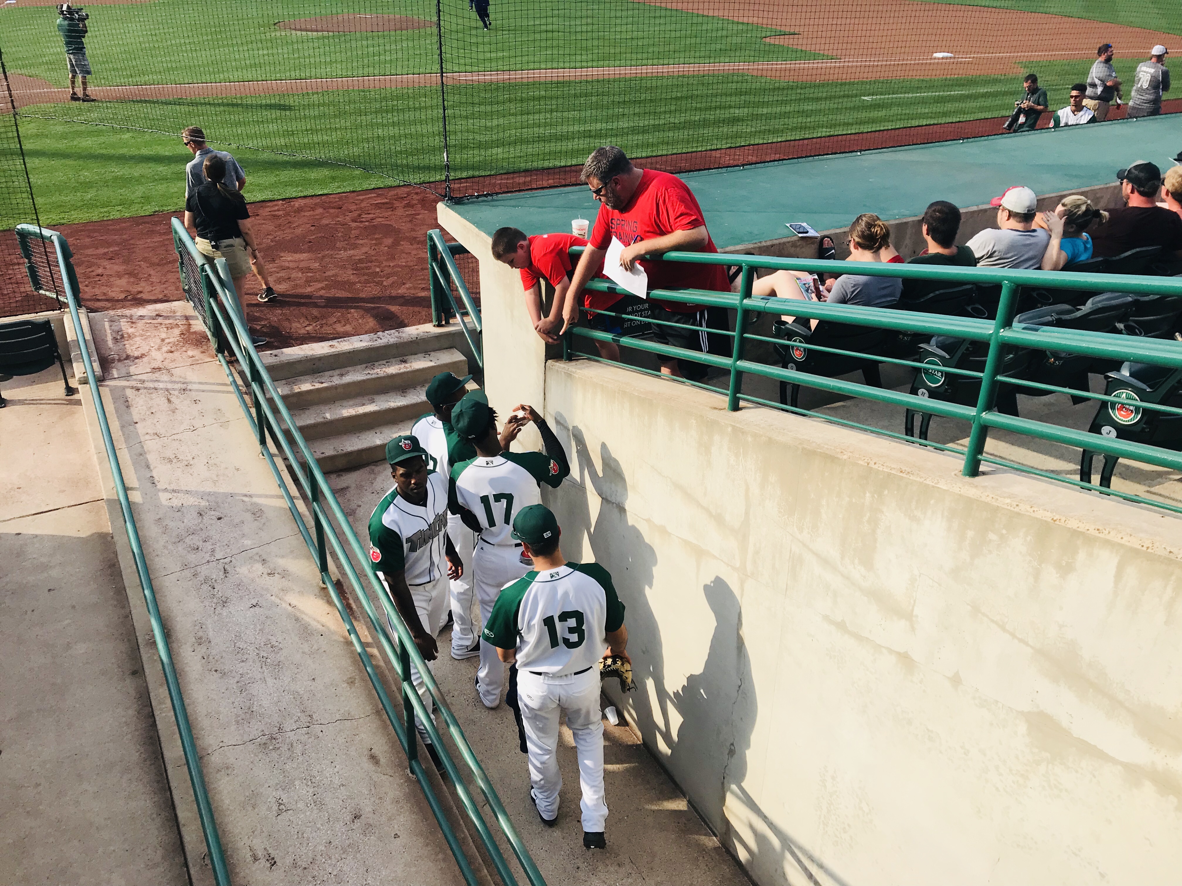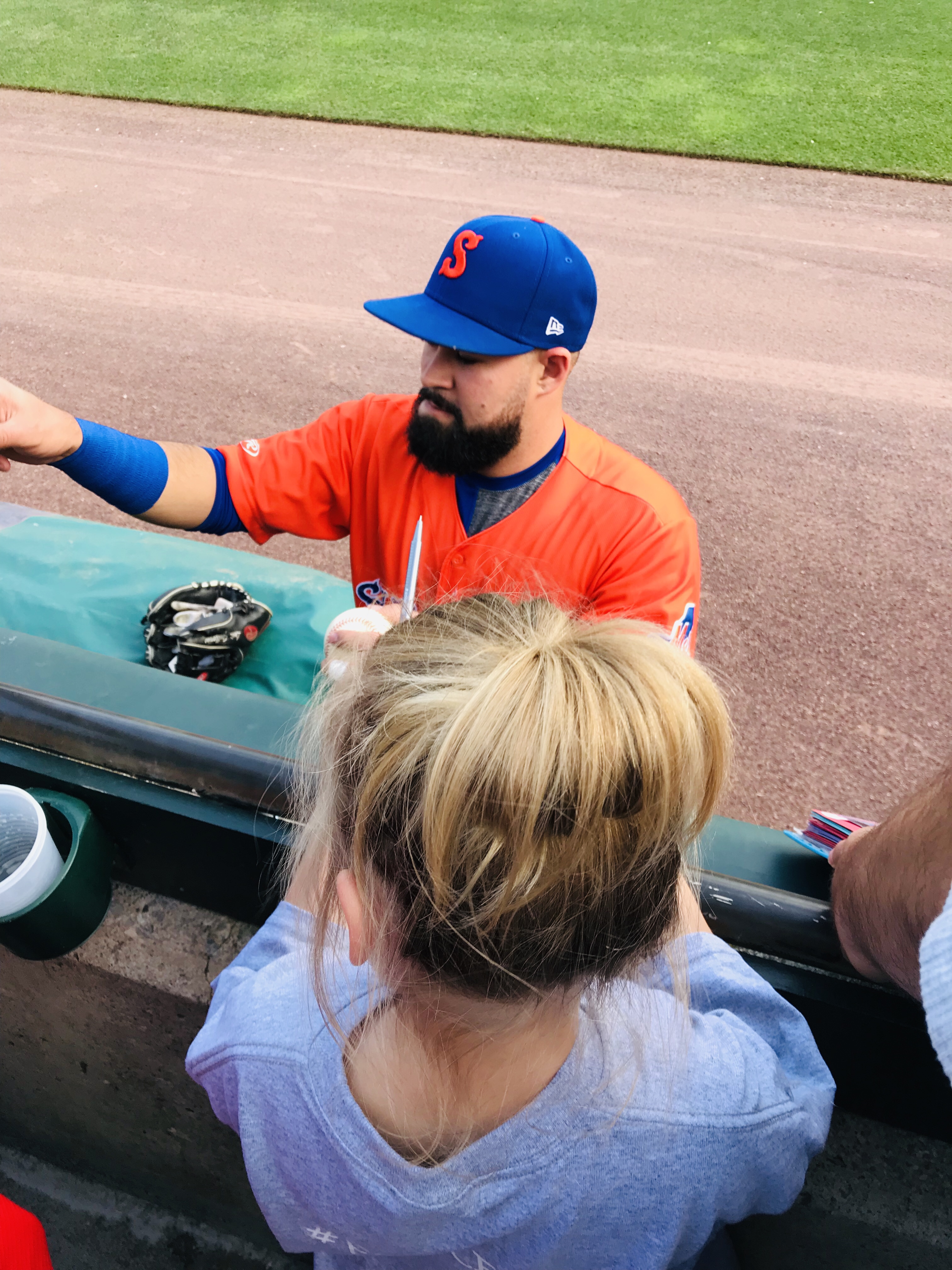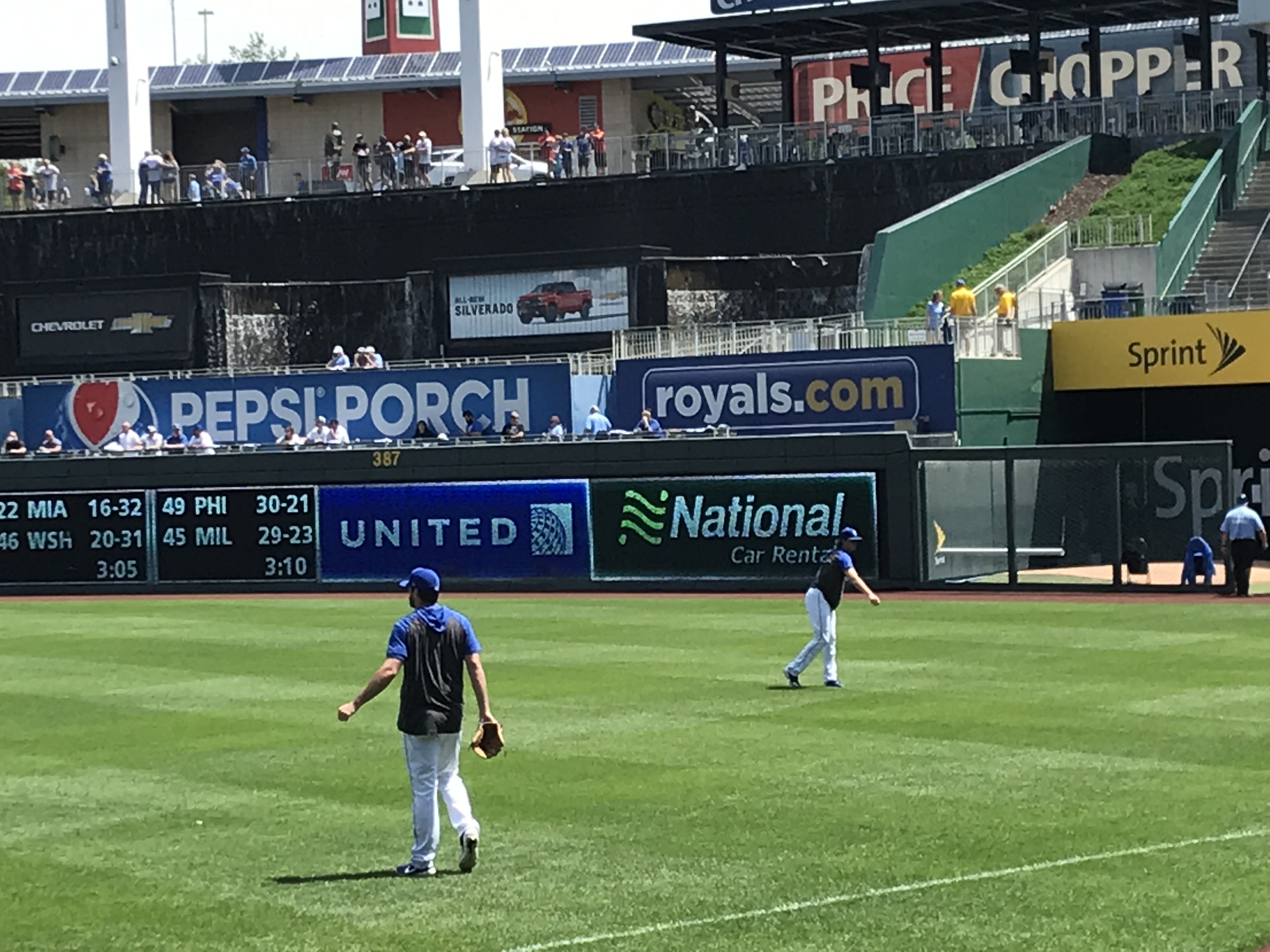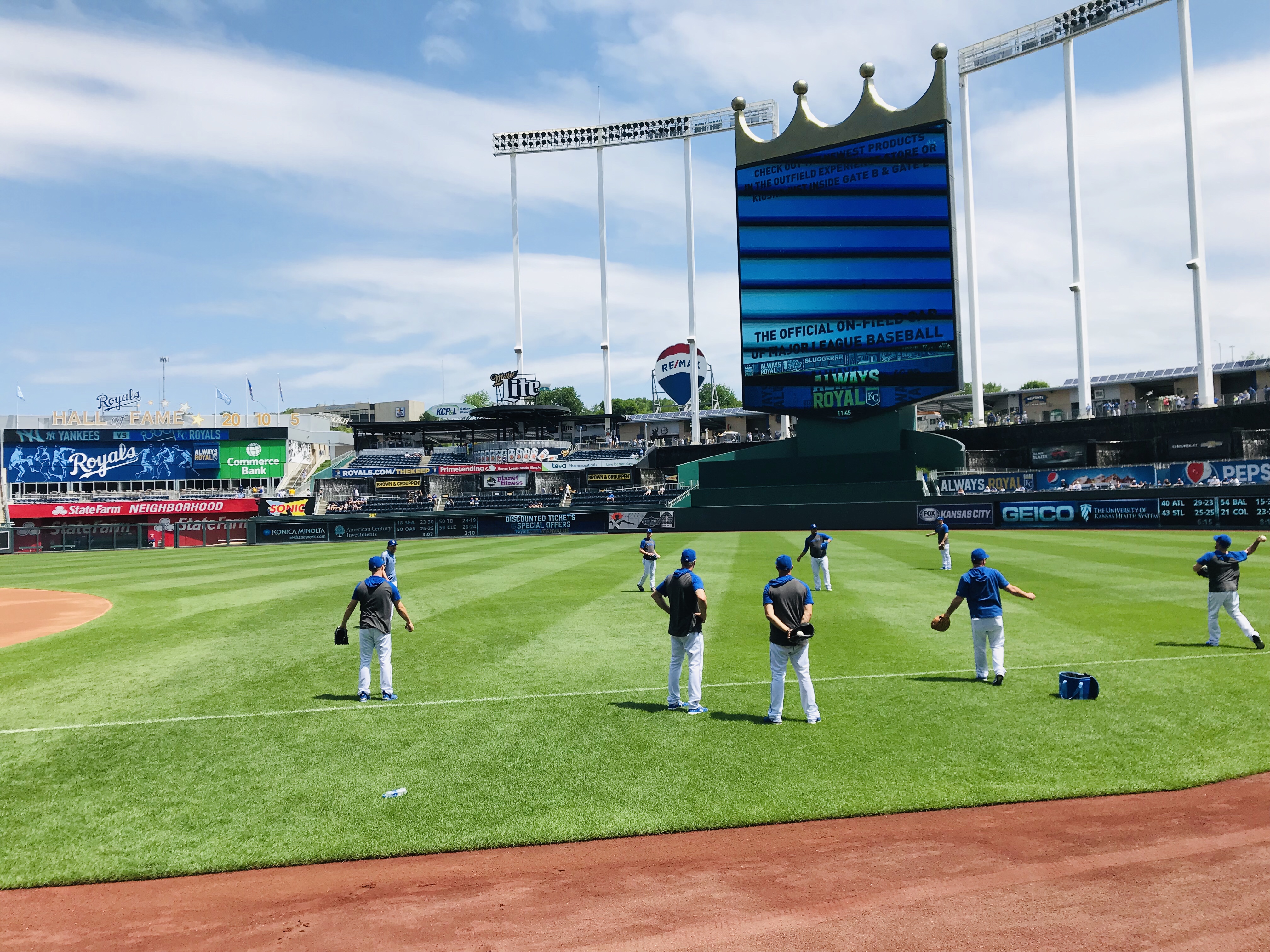 Player Accessibility: Given that the Yankees were the opponents, and the Royals are in a rebuild, we decided that the Royals would present the best opportunity for autographs on this day. We all headed to the outfield side of the first base dugout at gate open and found a prime piece of real estate. At the time of our visit, the nets went to the end of the dugout. Nolan and Sam obtained about 6 autographs each, which is spectacular for a Major League Team (sadly). We also noticed that there was a small area between the dugout and the field seats where a player would occasionally stop and sign, but it wasn’t wide enough to fit more than a few people. We were glad to stick to the spot we had. On the other side of the field, there were several Yankees signing throughout the warm ups, but mobs formed quickly. We were very excited with our results and happy to see a team that was generally happy to sign.