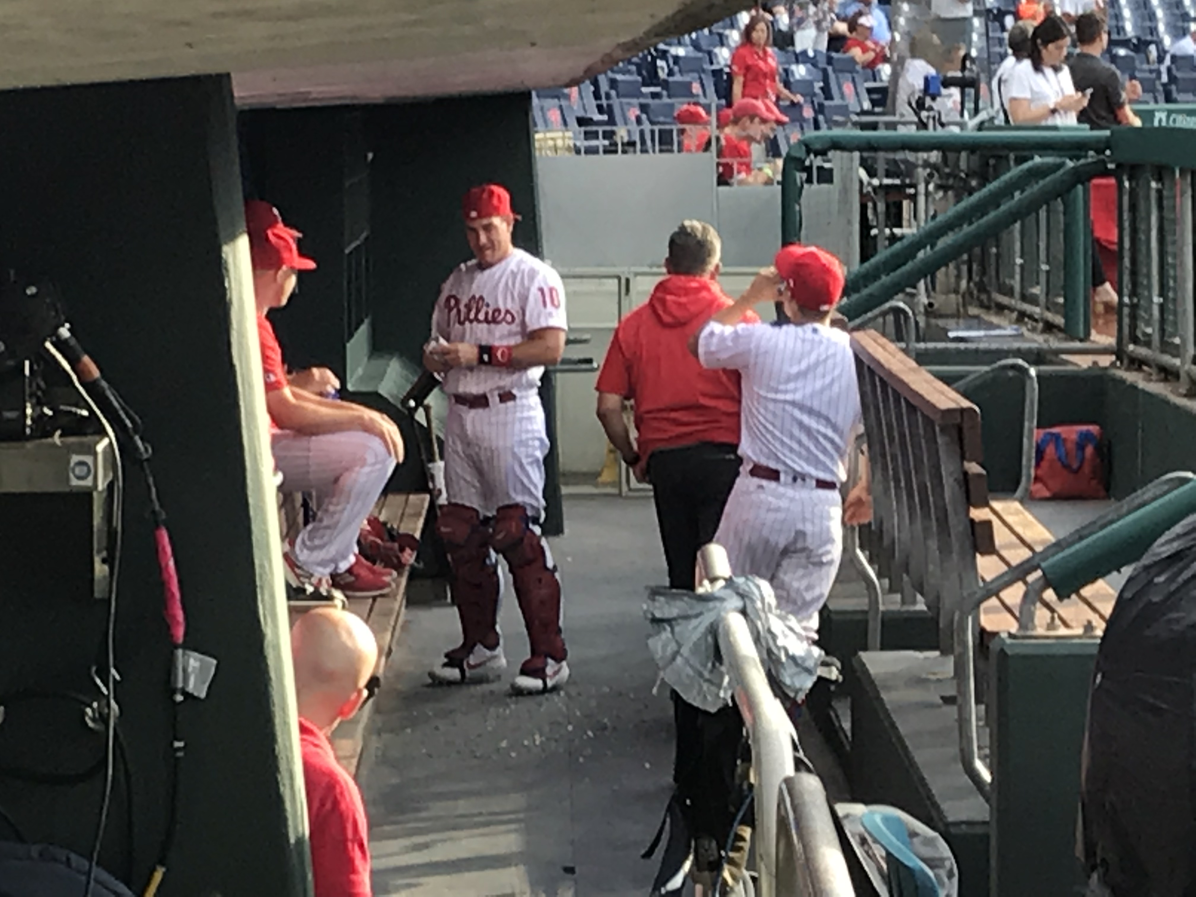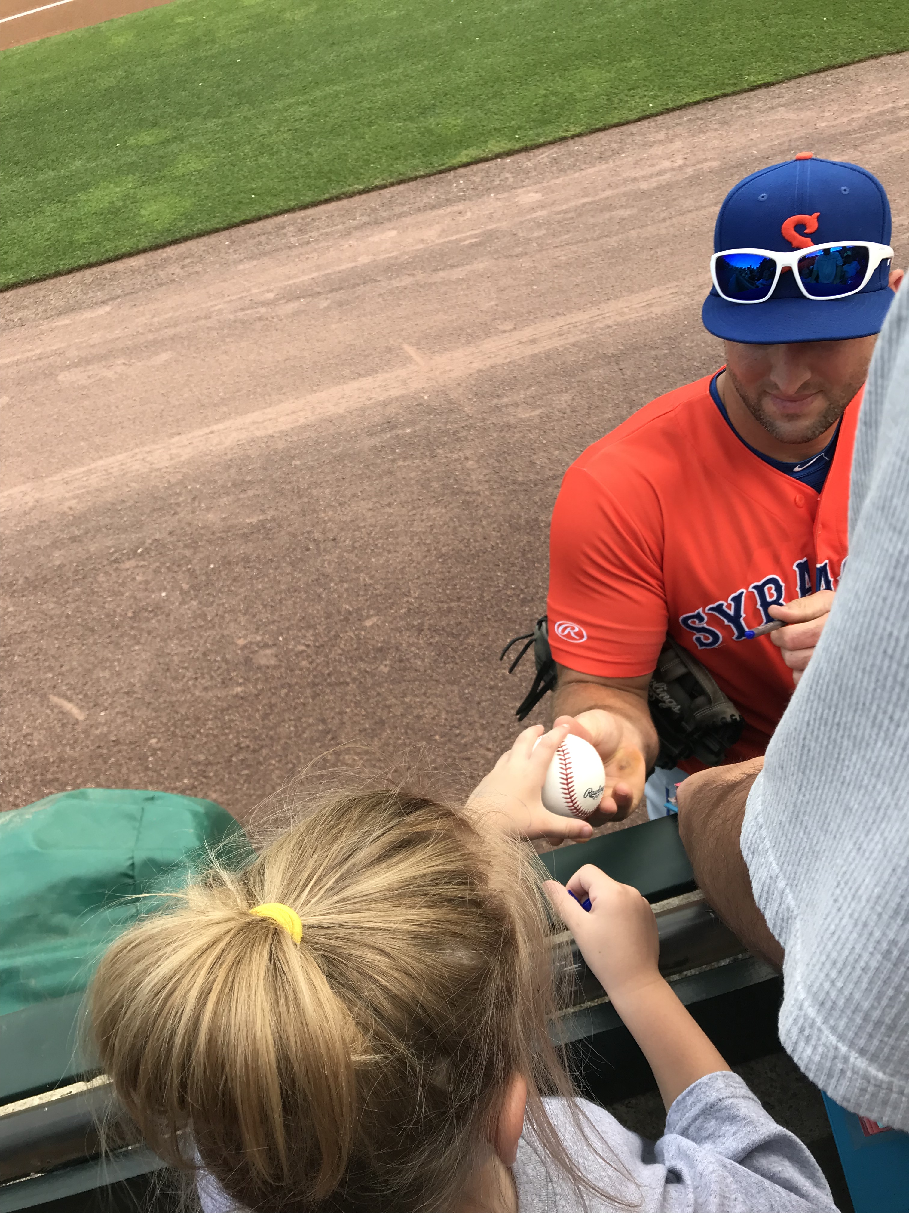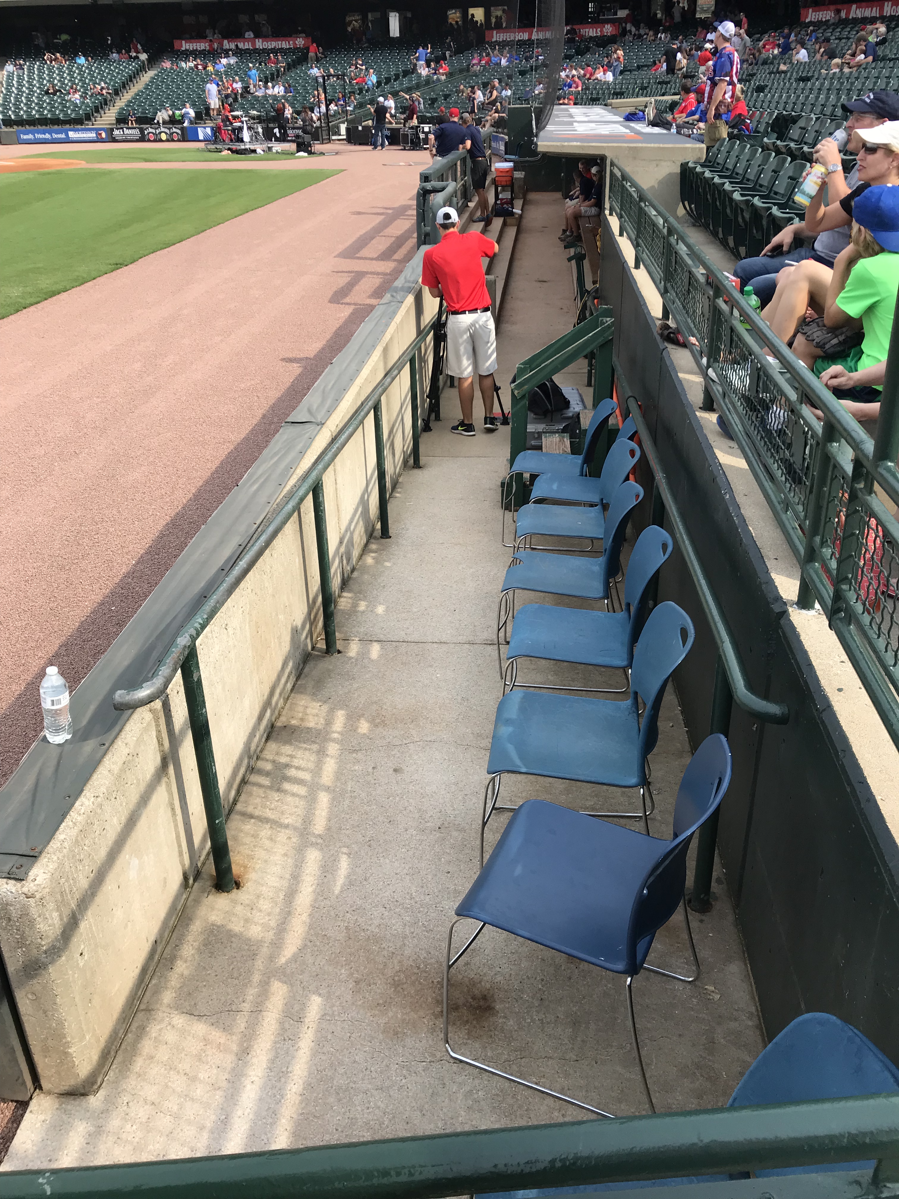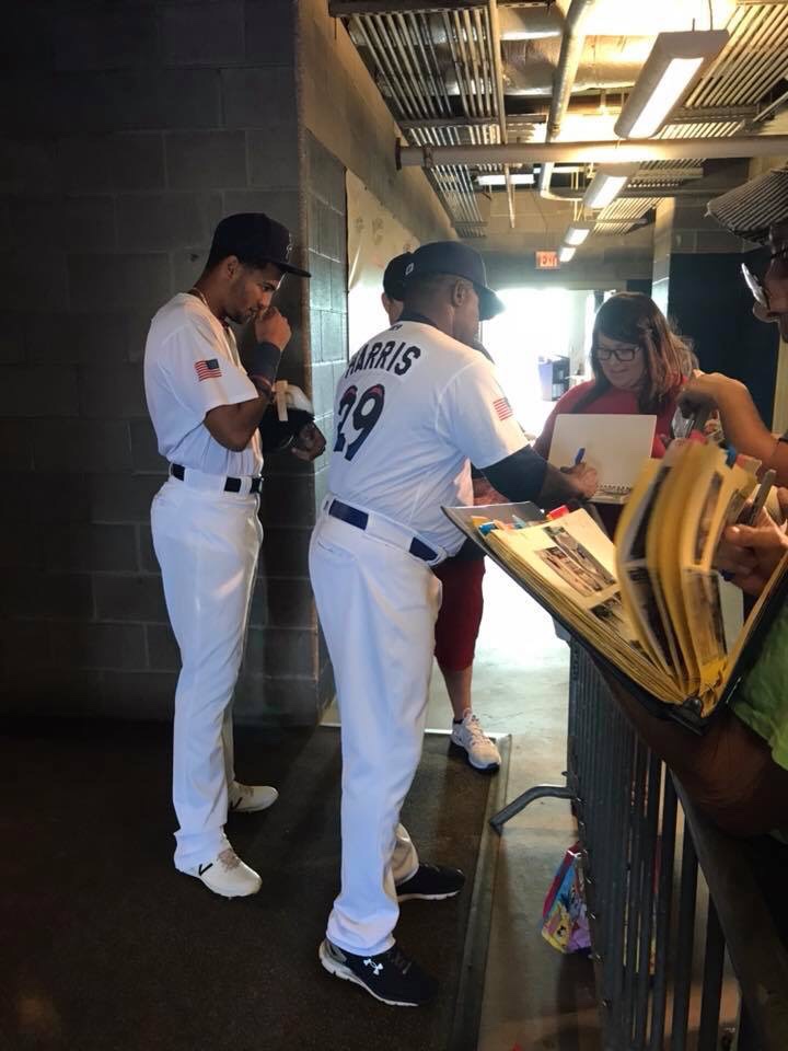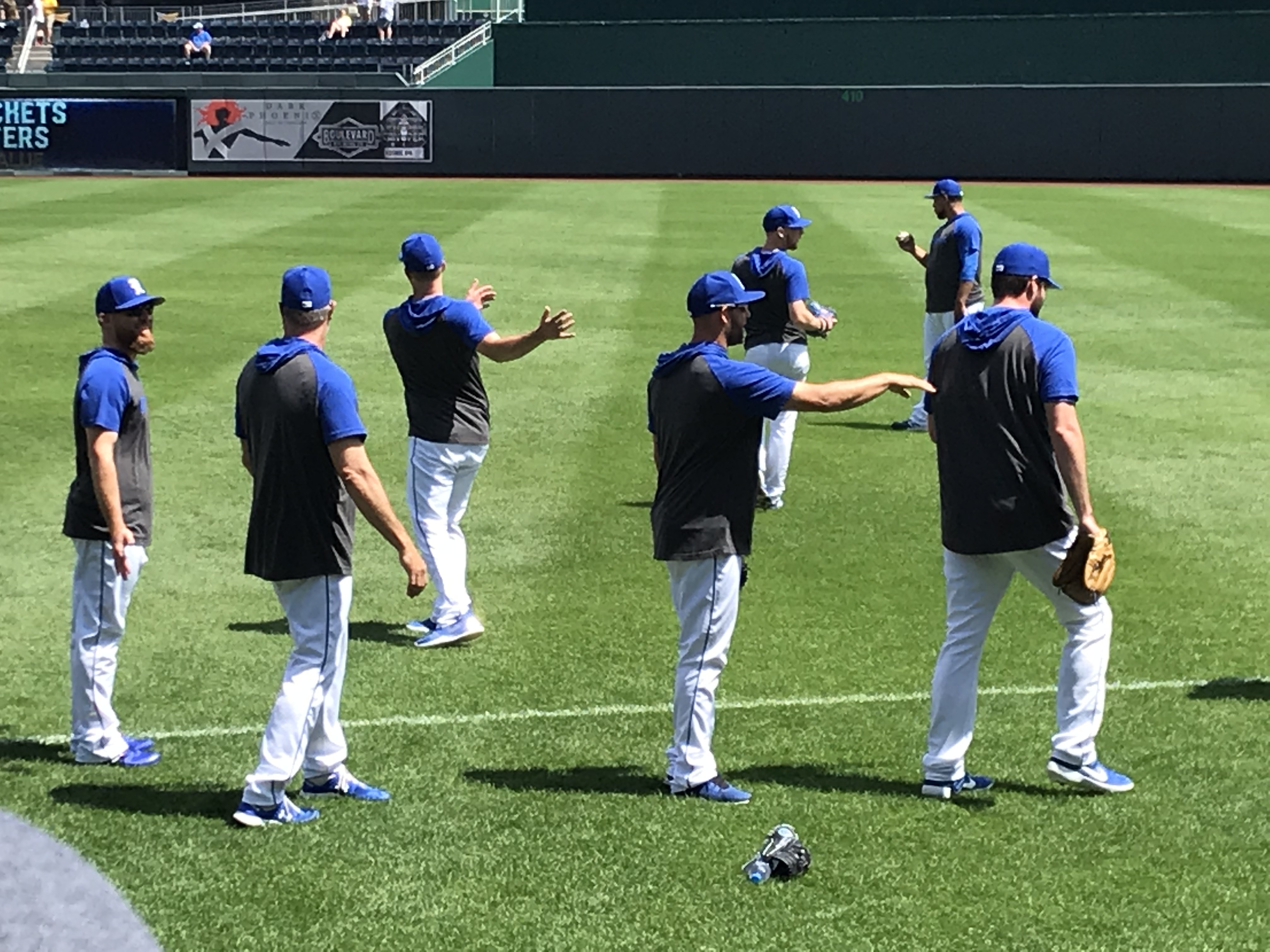 Player Accessibility: Given that the Yankees were the opponents, and the Royals are in a rebuild, we decided that the Royals would present the best opportunity for autographs on this day. We all headed to the outfield side of the first base dugout at gate open and found a prime piece of real estate. At the time of our visit, the nets went to the end of the dugout. Nolan and Sam obtained about 6 autographs each, which is spectacular for a Major League Team (sadly). We also noticed that there was a small area between the dugout and the field seats where a player would occasionally stop and sign, but it wasn’t wide enough to fit more than a few people. We were glad to stick to the spot we had. On the other side of the field, there were several Yankees signing throughout the warm ups, but mobs formed quickly. We were very excited with our results and happy to see a team that was generally happy to sign.