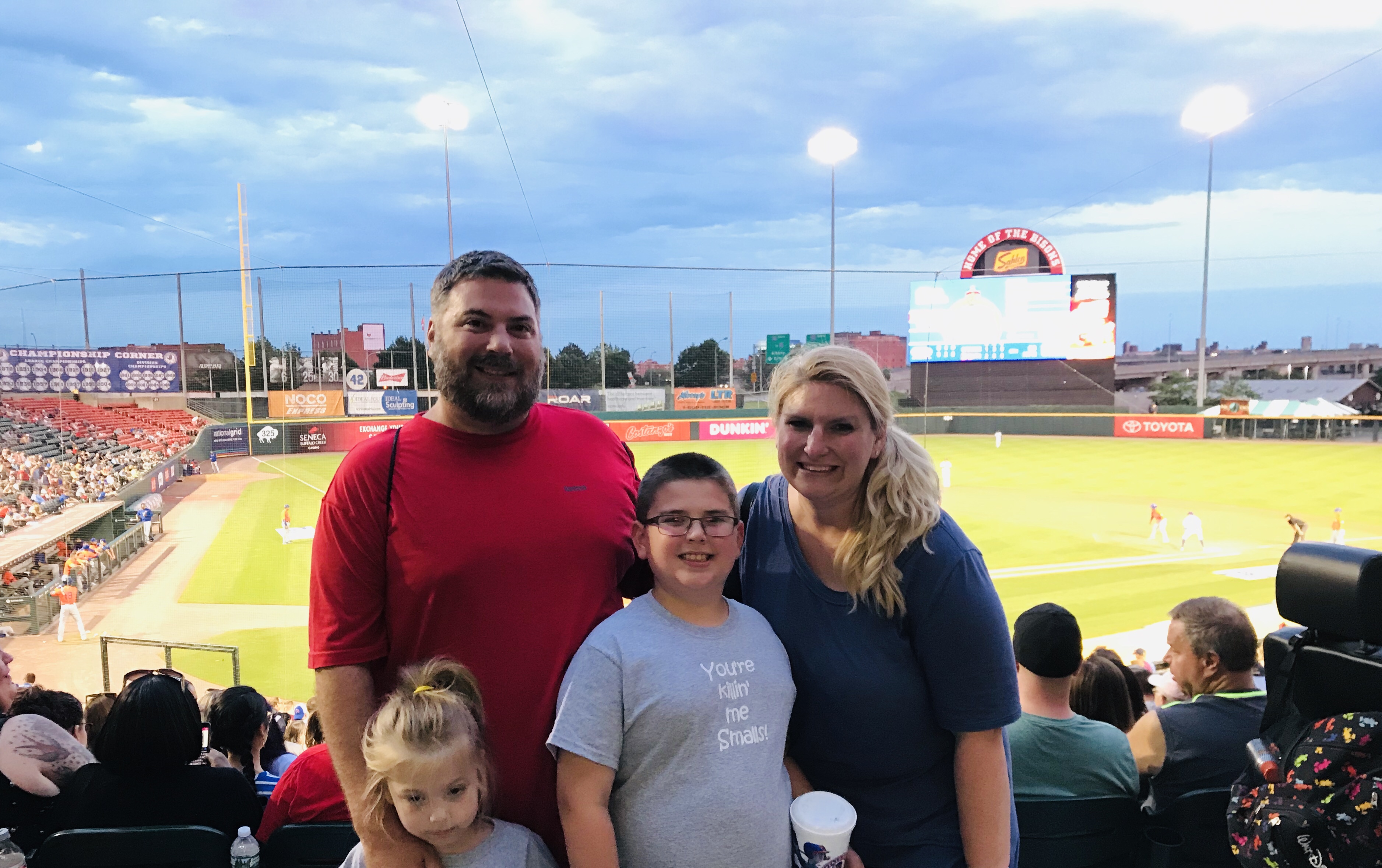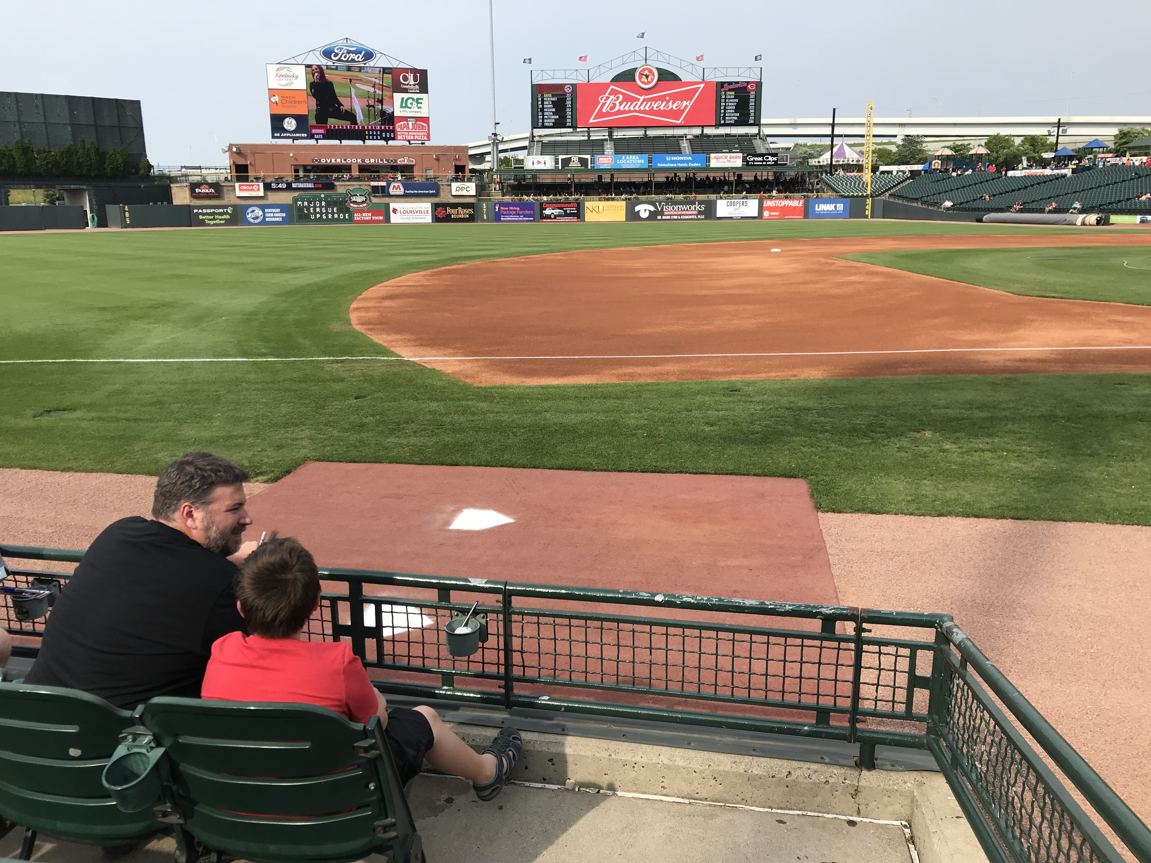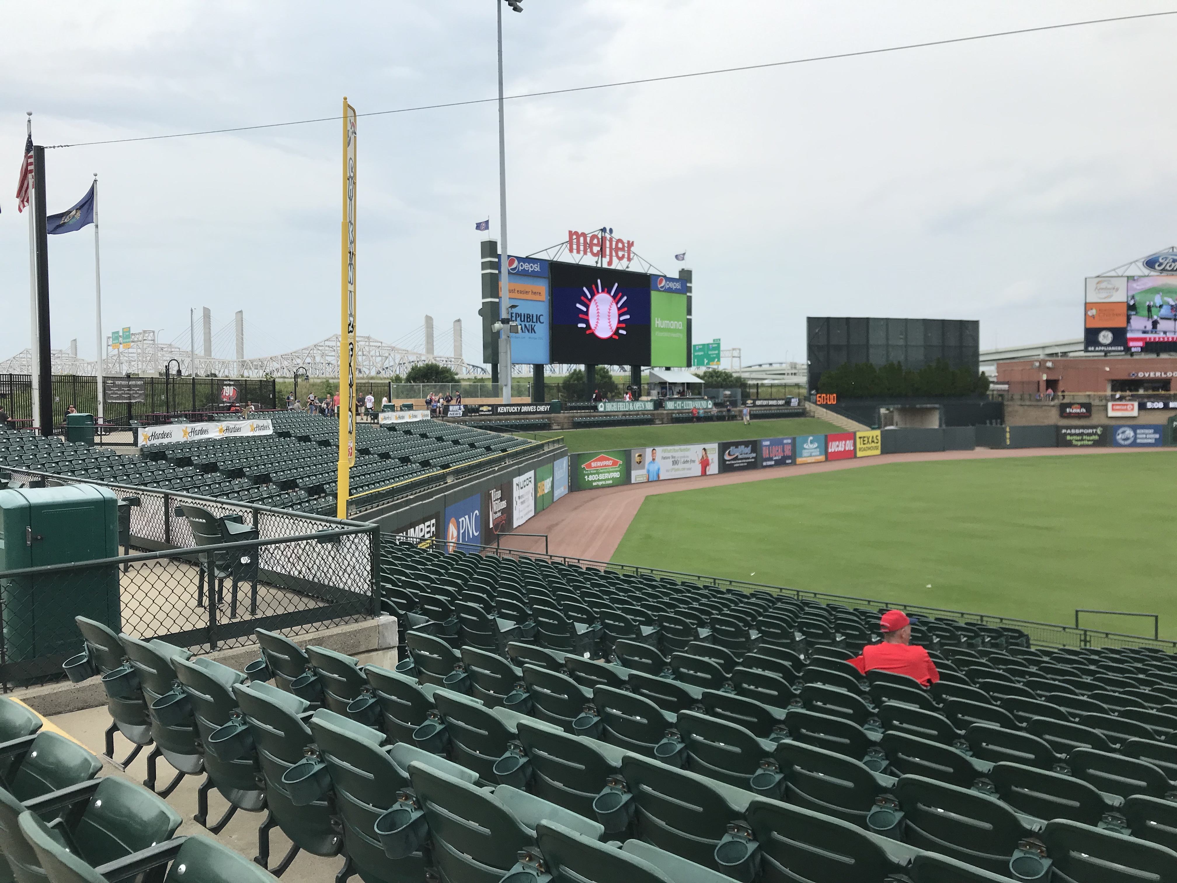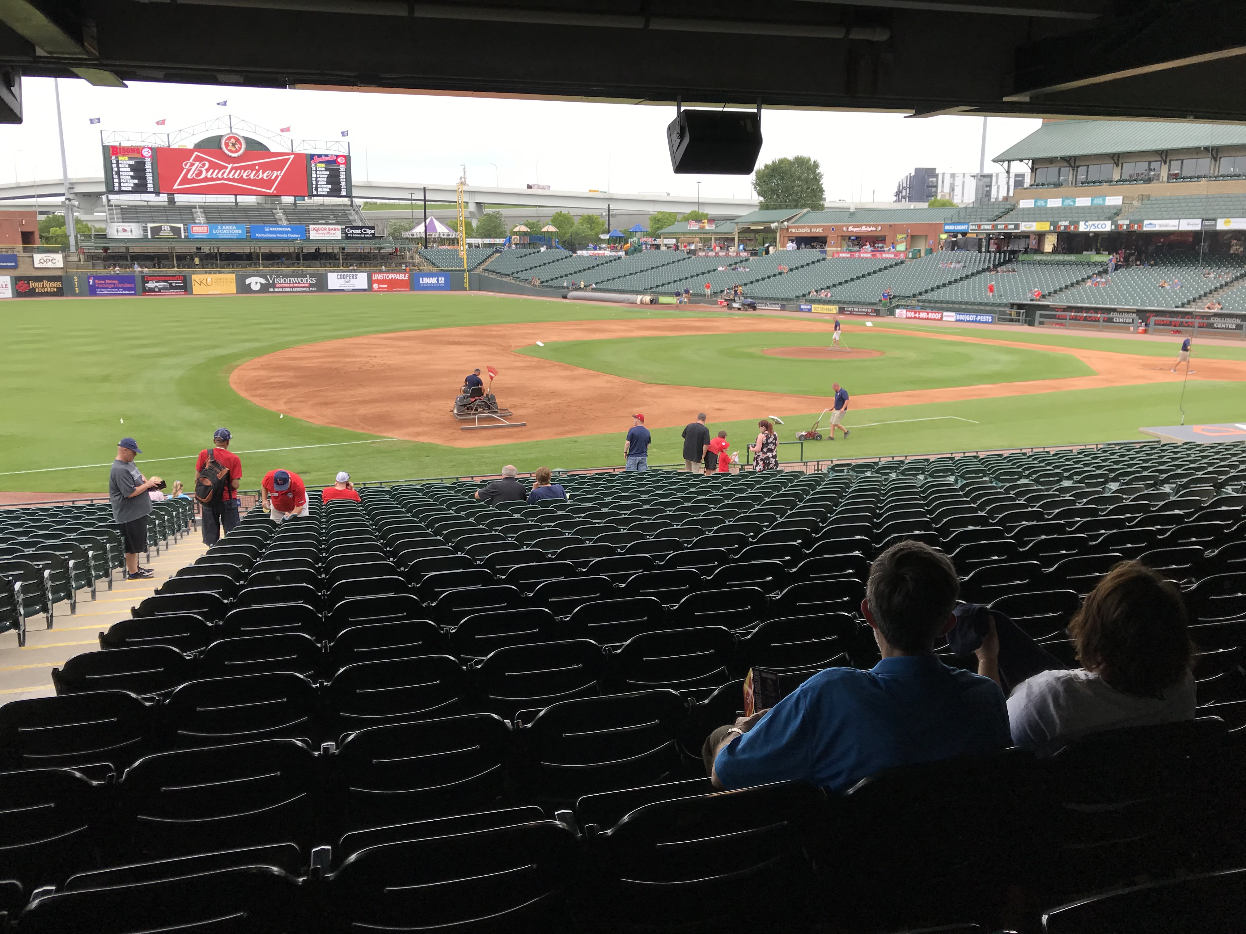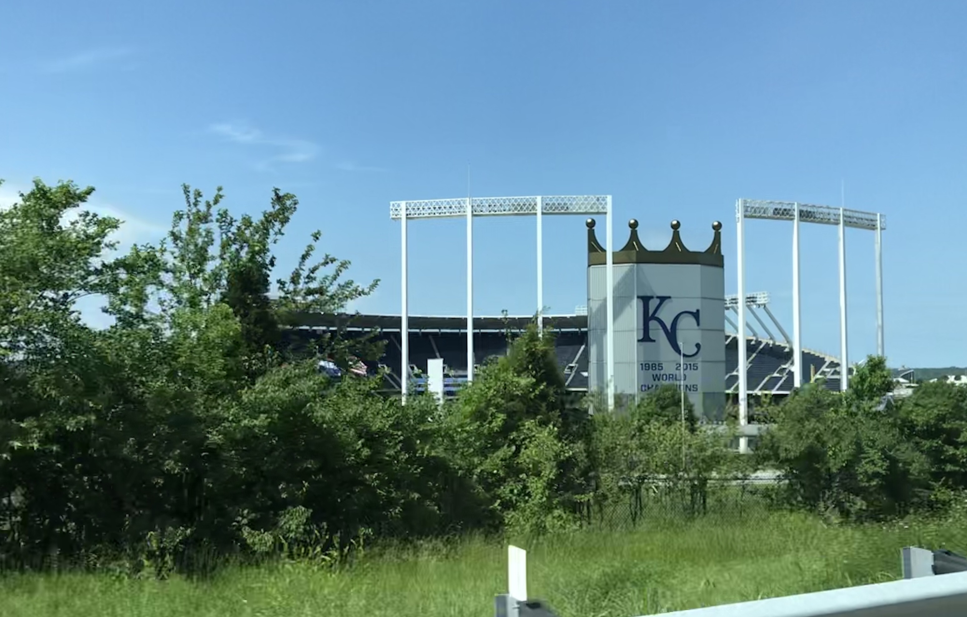 Overview: We visited Kauffman Stadium (KS) in May of 2019. It was an impromptu weekend getaway trip (it’s only 3 hours away from us). We went against our usual policy and purchased tickets from Stubhub on the day of the game (on a Friday vs. the Yankees). We were met with a severe thunderstorm with a tornado warning as we pulled up to the stadium, so we had to make a harrowing escape through the interstate mess that was KC in a downpour with no visibility. So we had to hastily sell our tickets on Stubhub and repurchase tickets for the day game of the doubleheader the next day. We were so glad it worked out because we all loved this stadium.
