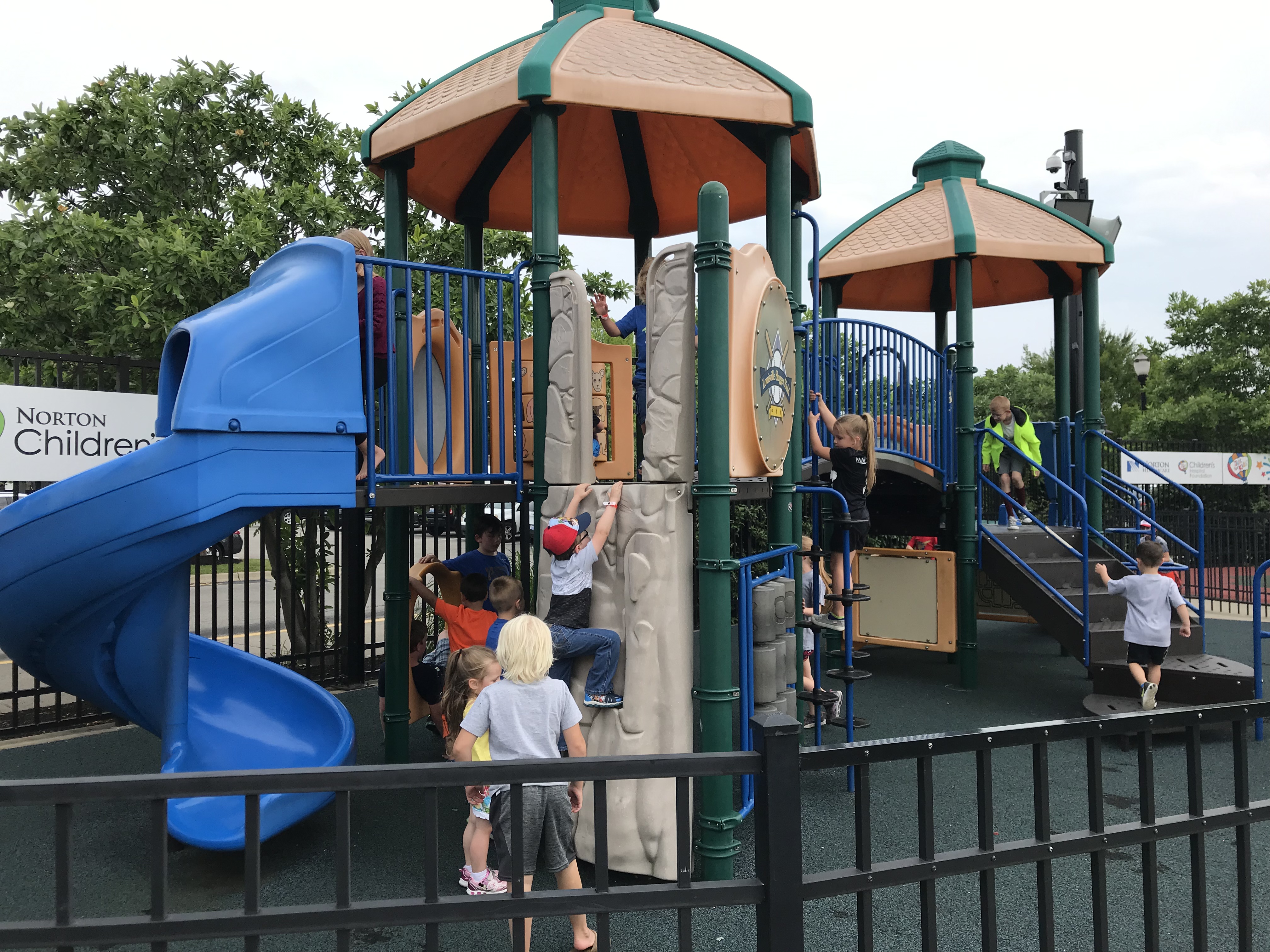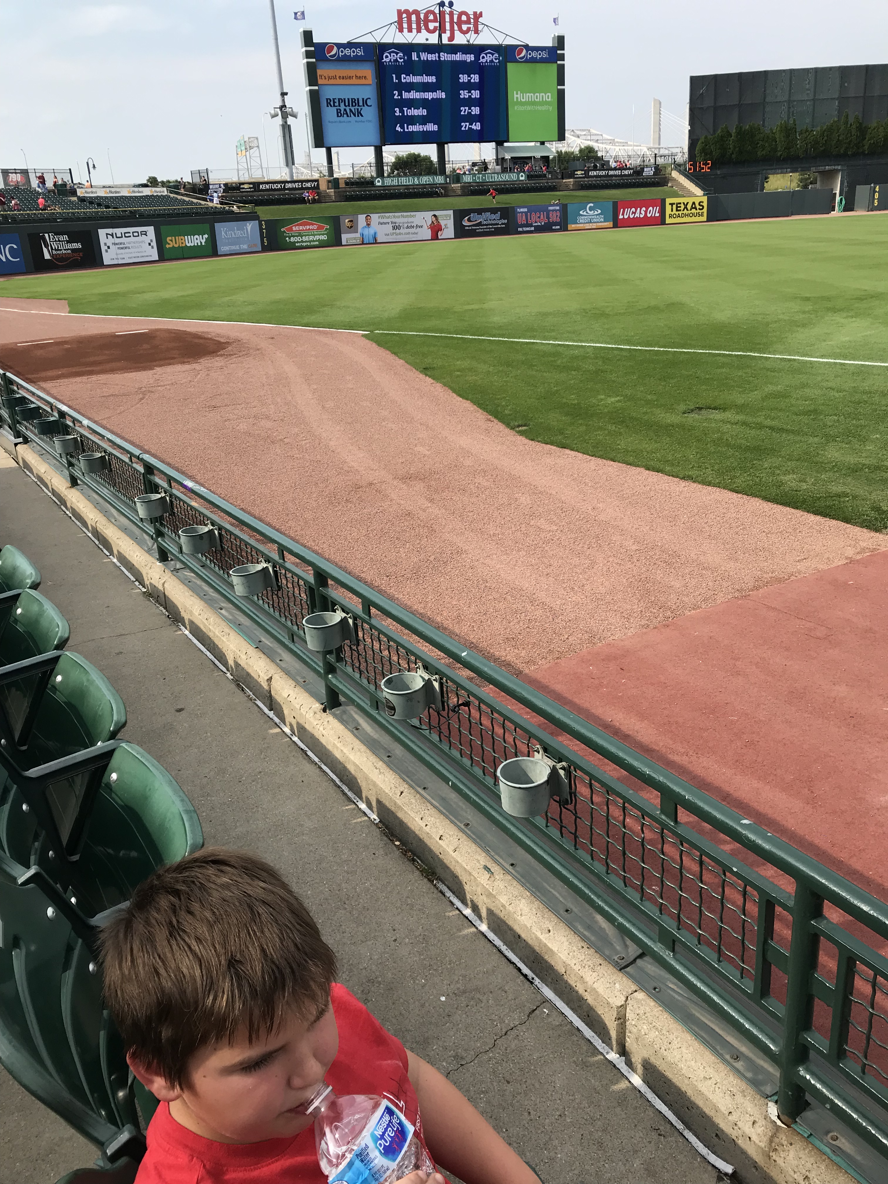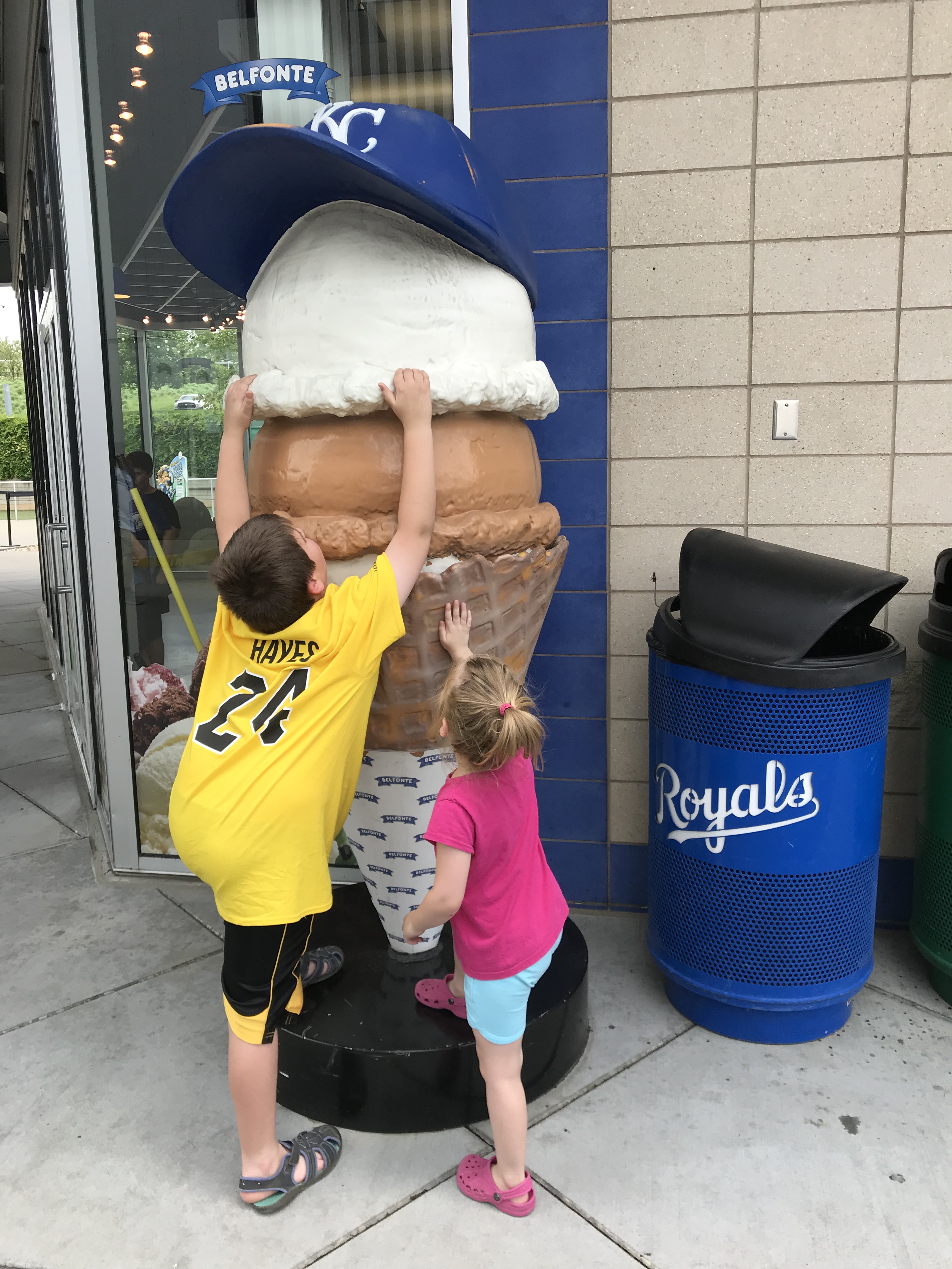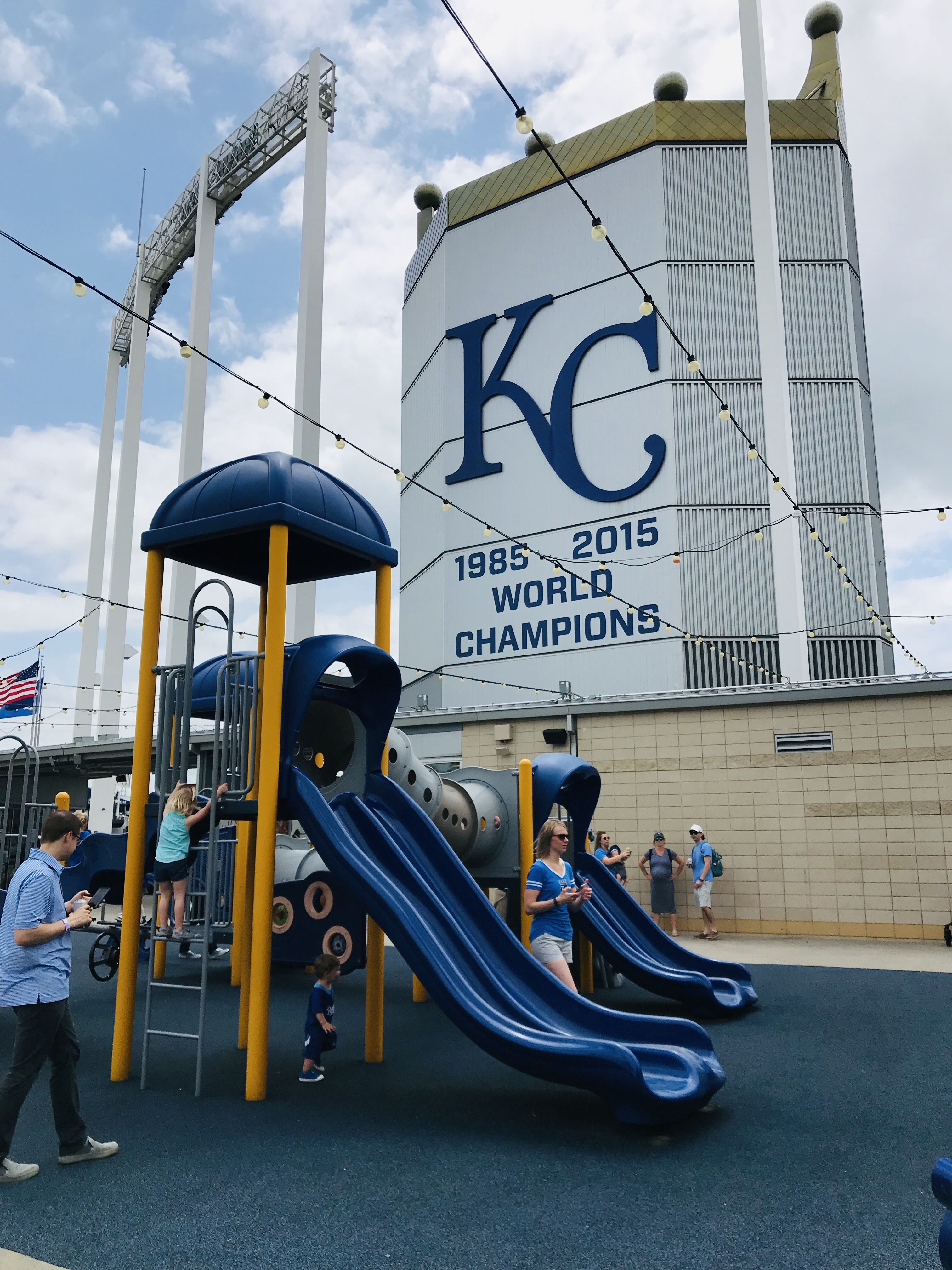KS was built in the late 60s, but had a makeover in the mid 2000s, and it was incredibly well done. It has some 60s “groovy” architecture. The stadium sits outside of downtown, which some people knock. It didn’t bother me at all. There was plenty of parking (see below) and none of the mess that a downtown park can bring (ie. rundown buildings, crime, one way streets, hard to navigate neighborhoods). Some of the touches that we really liked with KS included the extra concourse “behind” the regular concourse with some really nice green space. The fountains were amazing- I could have spent the whole game standing behind the fountains looking toward home plate. The “Outfield Experience” was amazing, housing the Kids Zone (see below) and the Royals Hall of Fame in right field. A Hall of Fame inside the park was a great idea. Another thing we really liked were free refills on the souvenir cups. We never had a concession stand worker remove the sticker that allowed for refills, so we had plenty of cold soda for everyone all game.